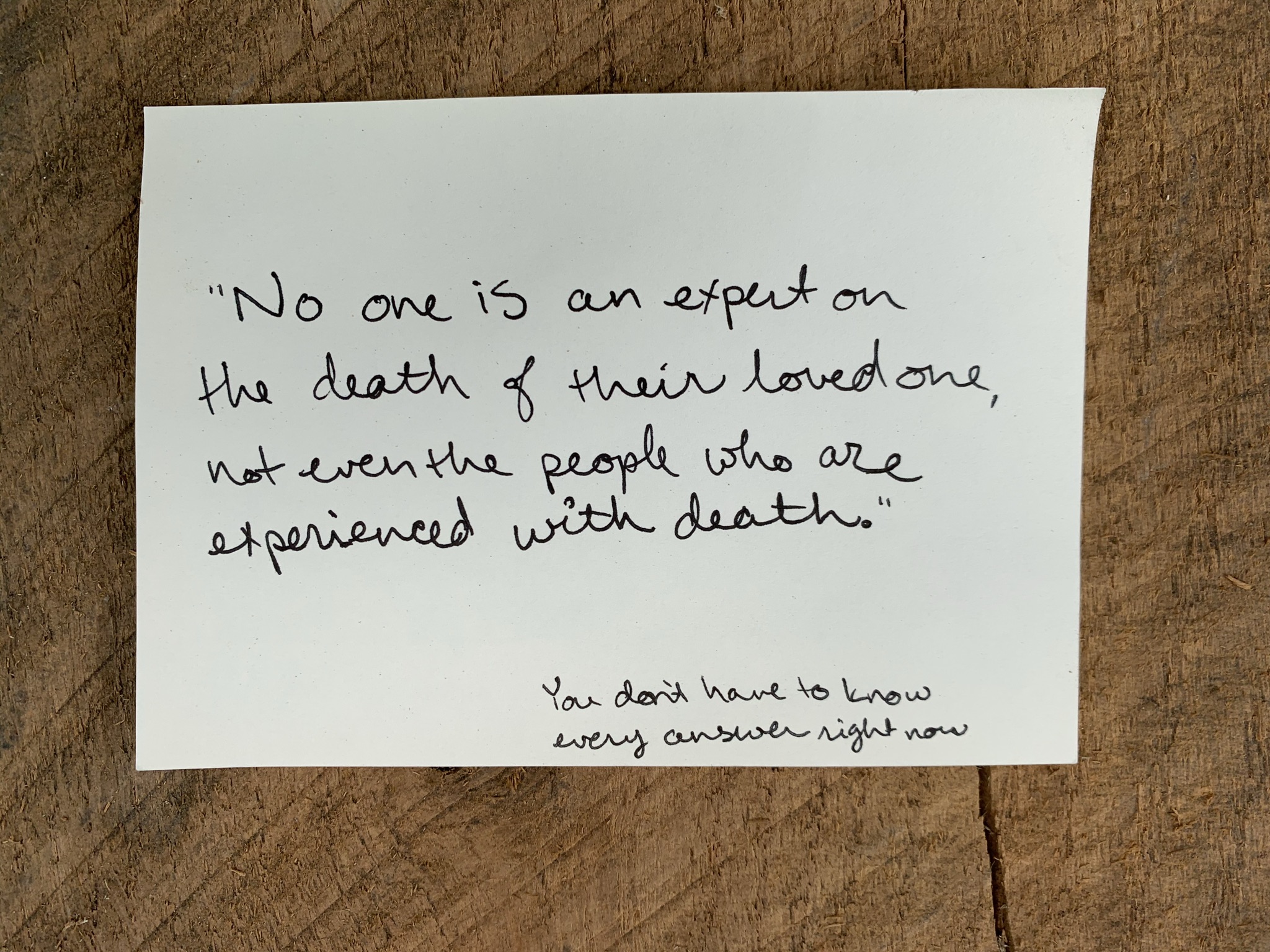 But here’s the truth. This is the only time this person has died, and this is the only time a funeral has been considered and the only time these dreams have been ended. Even for those of us who have conversations with people about death all the time, the death of our own loved ones leaves us a little lost.